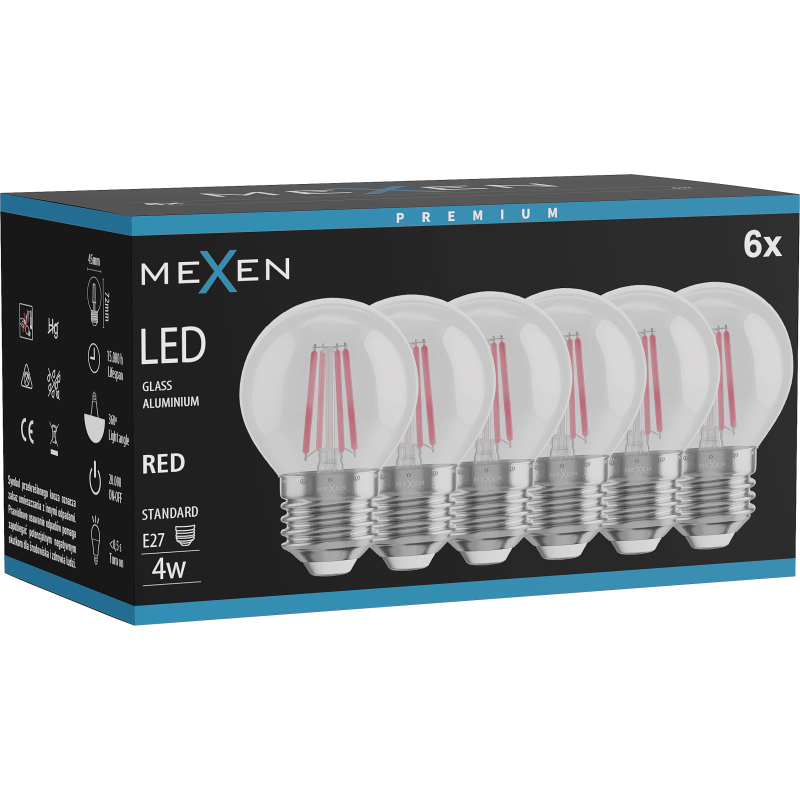 Mexen Vintis 6x żarówka filament LED E27, G45, 4W, 55 lm, red - L156-E27-04XX-45x06