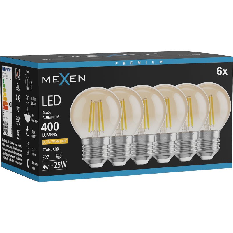 Mexen Vintis 6x żarówka filament LED E27, G45, 4W, Ciepła - 2200K, 400 lm, amber - L156-E27-0422-50x06