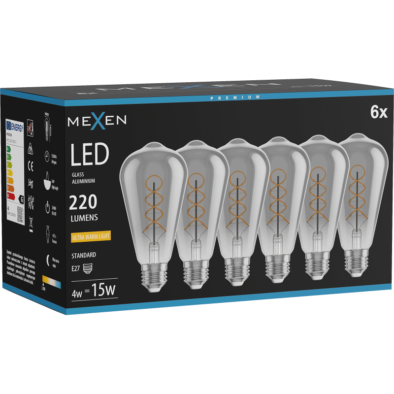 Mexen Vintis 6x żarówka filament spirala LED E27, ST64, 4W, Ciepła - 2200K, 220 lm, smoke - L162-E27-0422-70x06