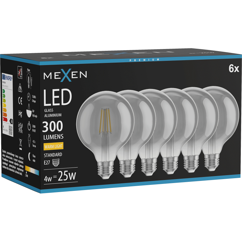 Mexen Vintis 6x LED žárovka s vláknem E27, G95, 4W, teplá - 2700K, 300 lm, kouřová - L157-E27-0427-70x06