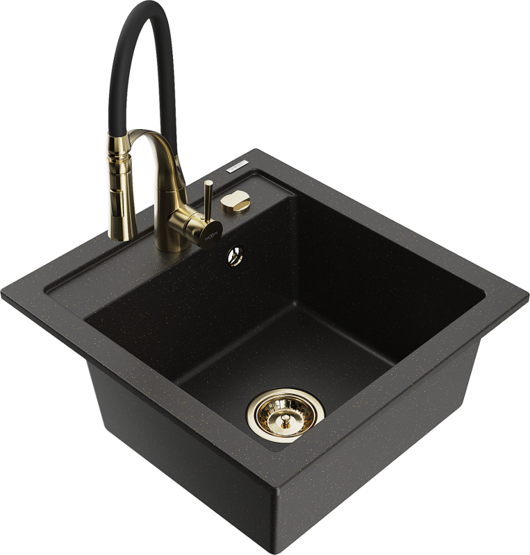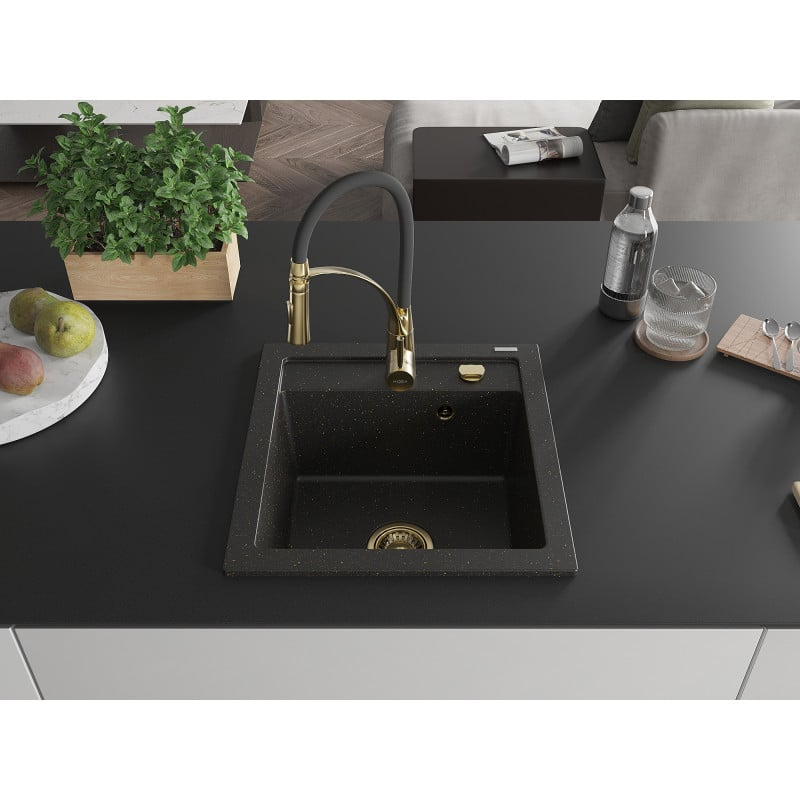Mexen Vito jednodřez granit s baterií Aster, černá/zlatá 6503-75-73450-57-G