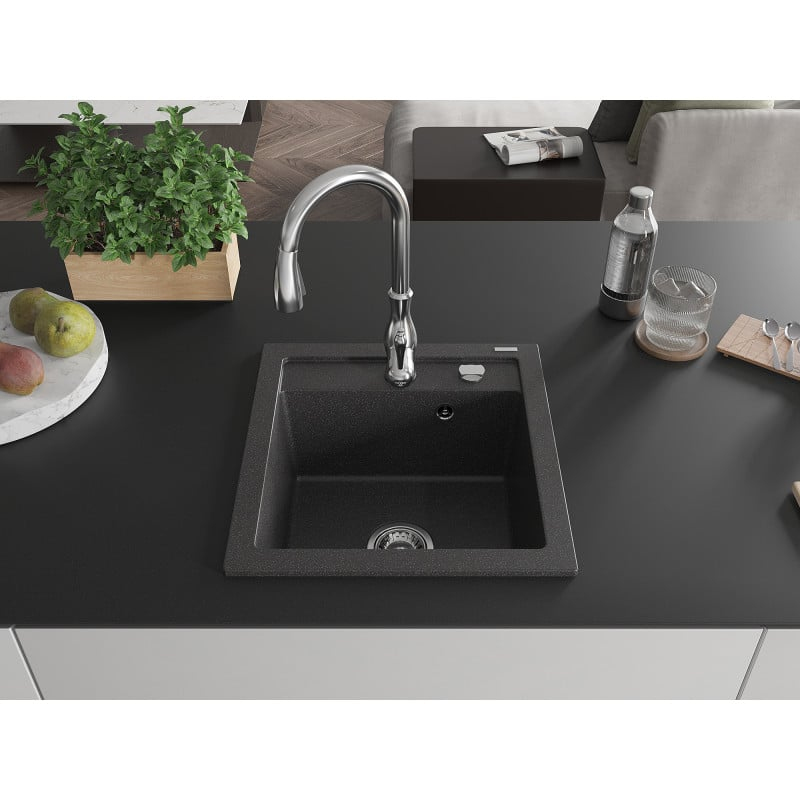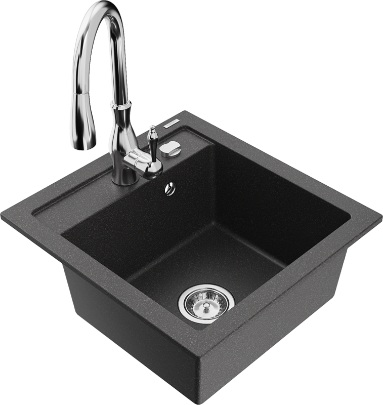 Mexen Vito 1-miskový granit dřez s kuchyňskou baterií Savita, černá 6503-76-672601-00