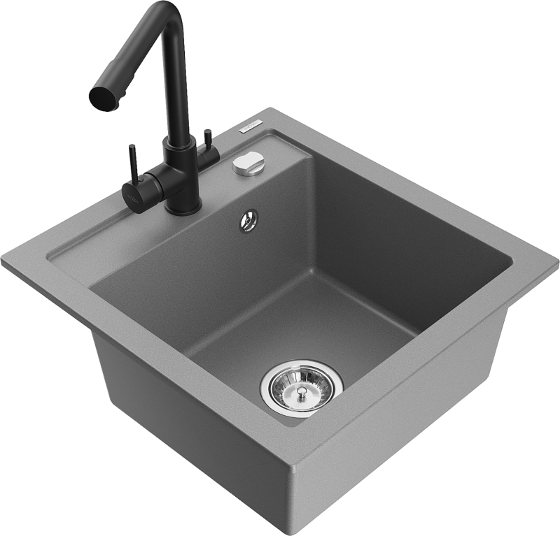 Mexen Vito 1miskový granitový dřez s kuchyňskou baterií Duero, šedá - 6503-71-671600-70