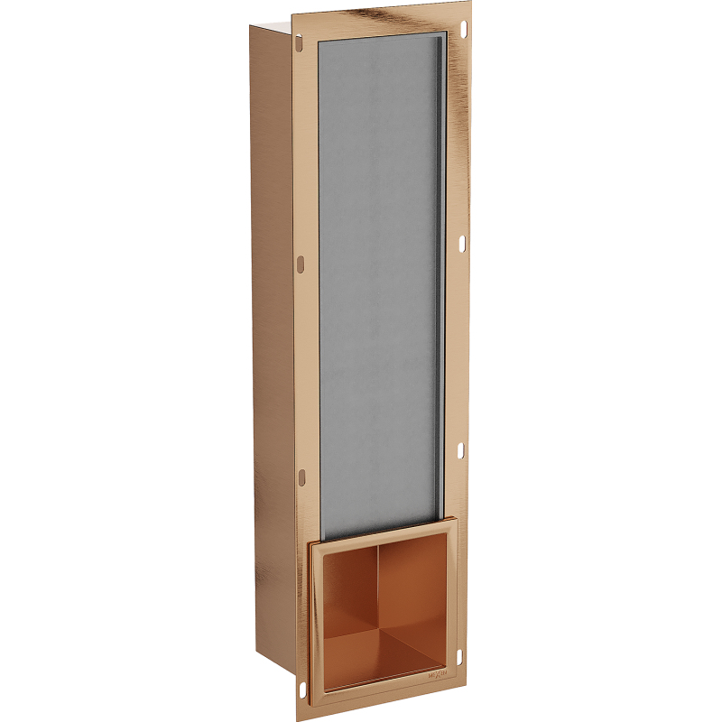 Dane techniczne: Materiał: Stal nierdzewna Wykończenie: Miedź szczotkowana Szerokość: 19,5 cm Wysokość: 72 cm Odległość od ściany: 12,1 cm Do zabudowy w ścianie - nie zabiera miejsca