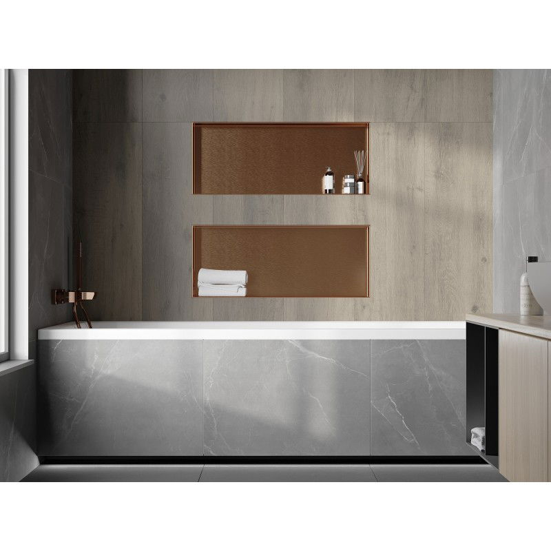 Dane techniczne: Materiał: Stal nierdzewna AISI 304 Szerokość: 75 x 30 cm Głębokość montażu: 10 cm Wykończenie: Miedź szczotkowana Kołnierz maskujący: Nie Do zabudowy w ścianie Uniwersalne zastosowanie Odporność na matowienie i korozję