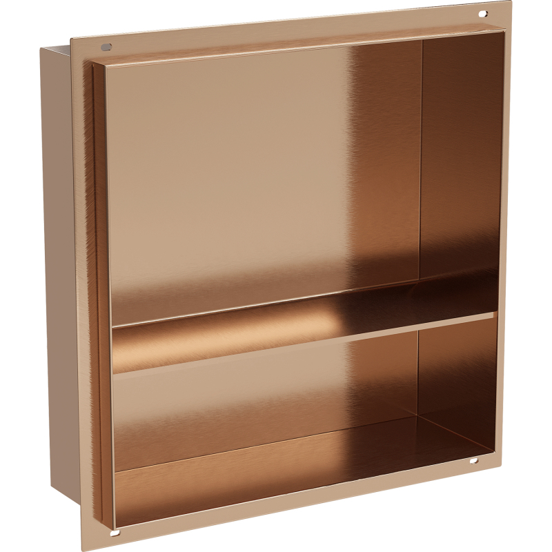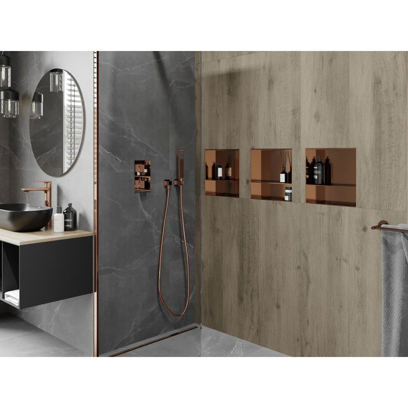 Mexen X-Wall-NR półka wnękowa bez kołnierza z półką 30 x 30 cm, miedź szczotkowana - 19C1303010S