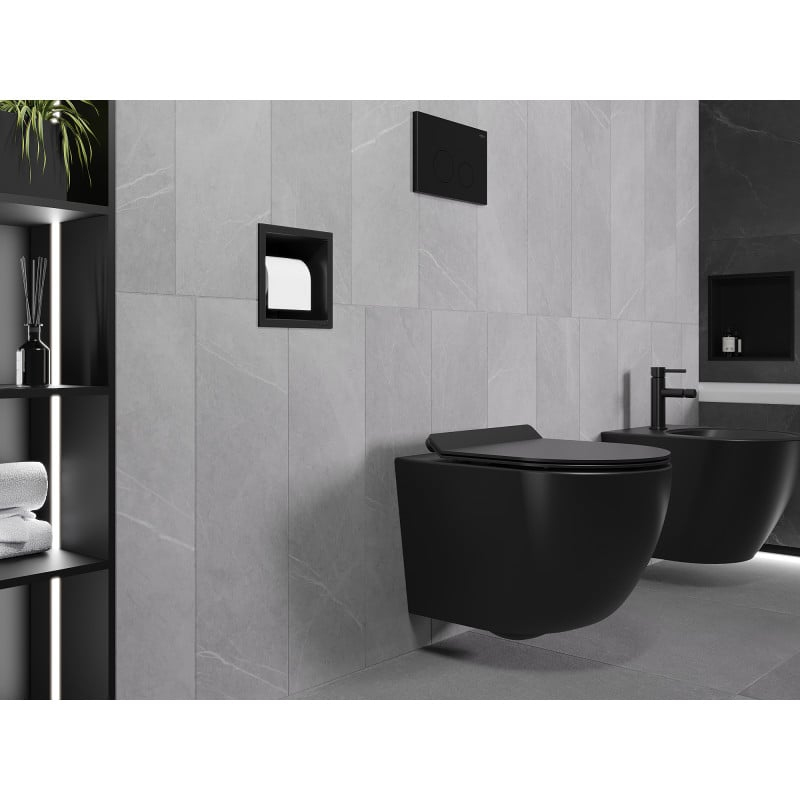 Dane techniczne: Materiał: Stal nierdzewna Wykończenie: Czarny Szerokość: 16,2 cm Wysokość: 16,2 cm Odległość od ściany: 9,2 cm Do zabudowy w ścianie - nie zabiera miejsca