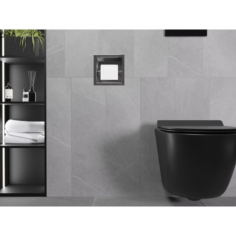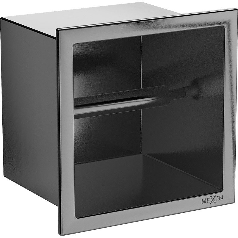 Dane techniczne: Materiał: Stal nierdzewna Wykończenie: Gun gray szczotkowany Szerokość: 16,2 cm Wysokość: 16,2 cm Odległość od ściany: 9,2 cm Do zabudowy w ścianie - nie zabiera miejsca