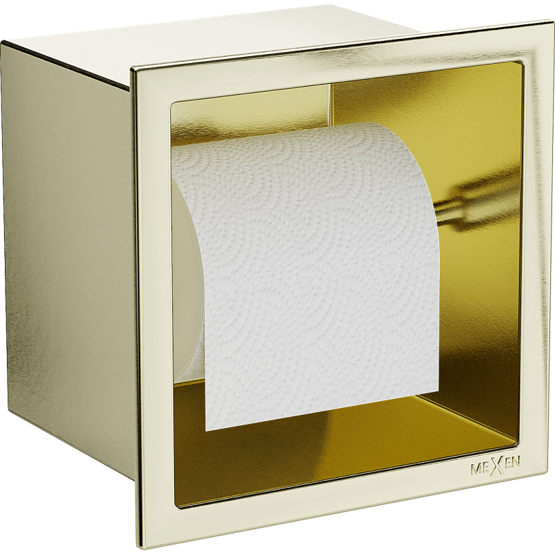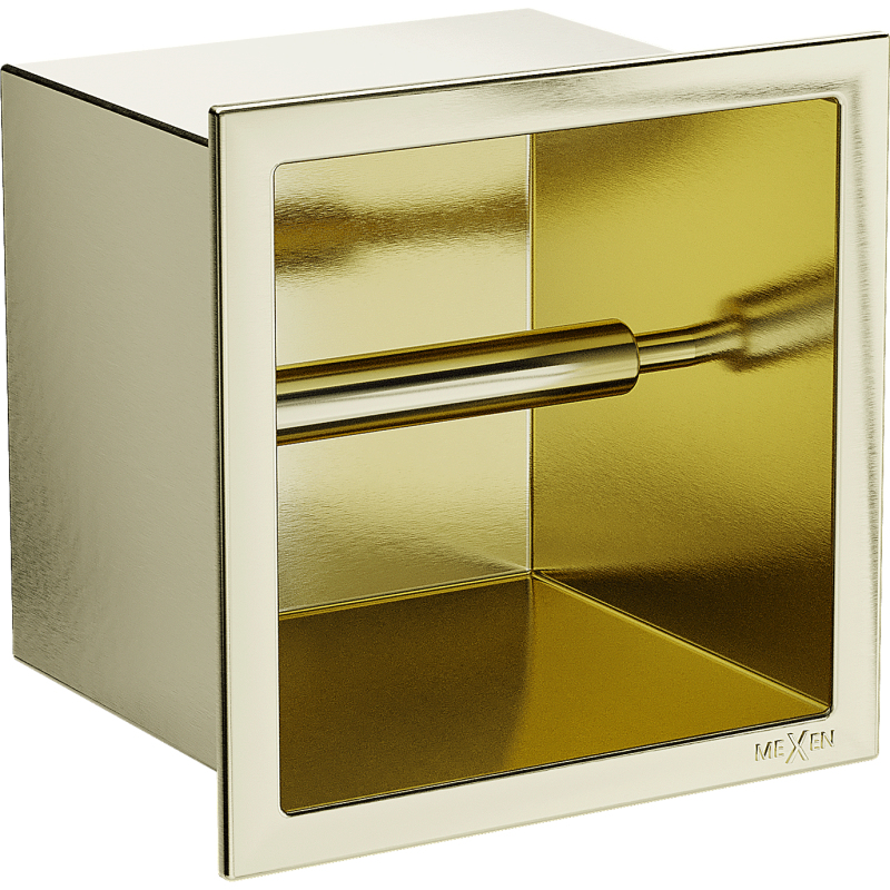 Dane techniczne: Materiał: Stal nierdzewna Wykończenie: Złoty szczotkowany Szerokość: 16,2 cm Wysokość: 16,2 cm Odległość od ściany: 9,2 cm Do zabudowy w ścianie - nie zabiera miejsca