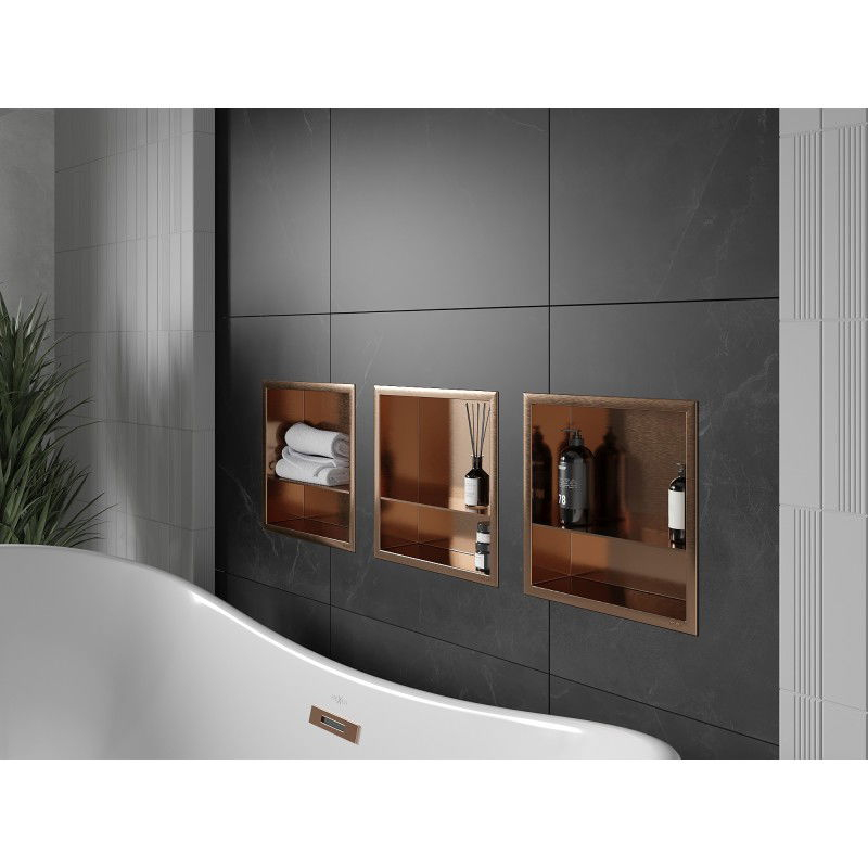 Mexen X-Wall-R półka wnękowa z kołnierzem i półką 30 x 30 cm, miedź szczotkowana - 19C0303010S