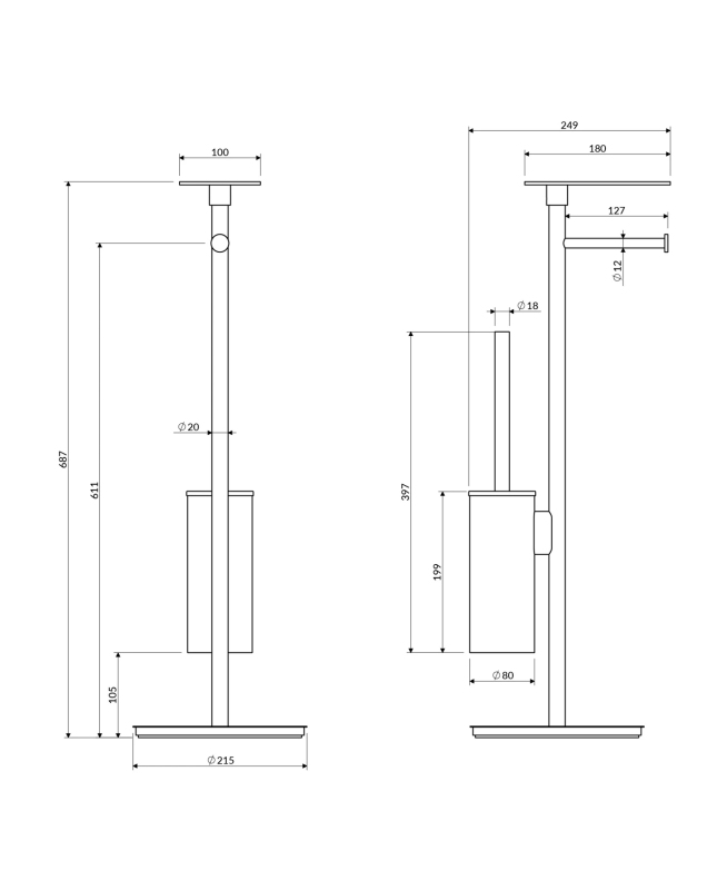 MODERN PROJECT stojak na papier i szczotkę toaletową z półką, chrom połysk