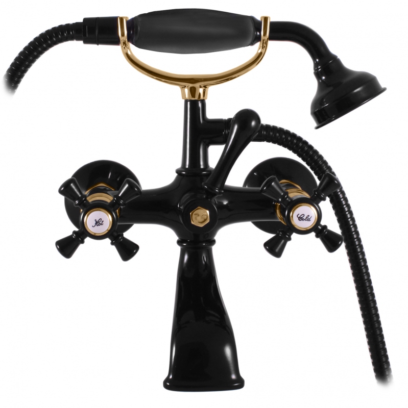 RAV SLEZÁK MORAVA Baterie vanová s vidlicí, had.a sprchou-černá matná/zlato MK359.5/2CMATZ