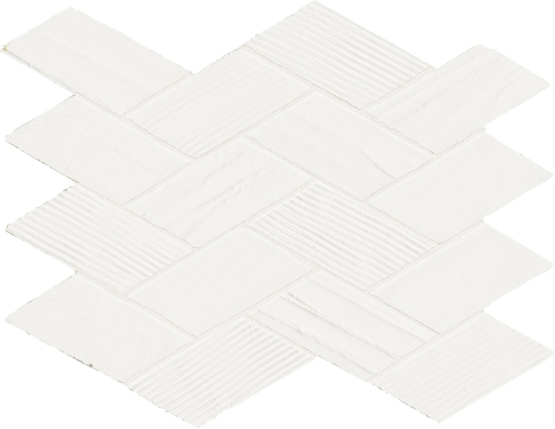 Mozaika v bílé barvě o rozměru 26,5x36 cm a tloušťce 9,5 mm s matným povrchem. Vhodné pouze do interiéru.