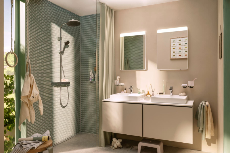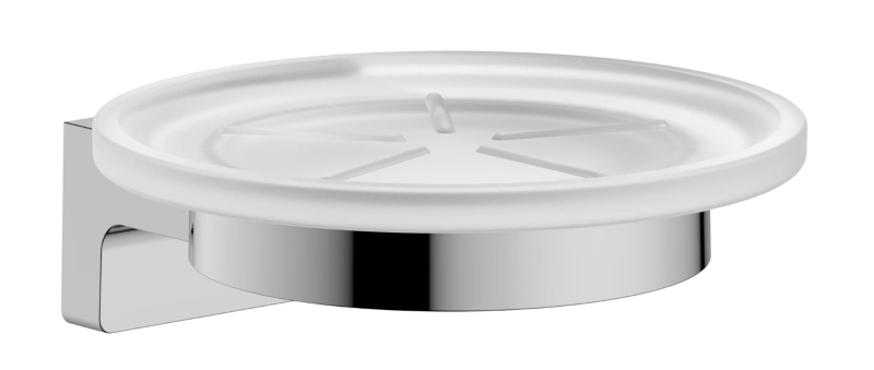 Mýdlenka v chromovém provedení. Šířka tohoto koupelnového doplňku od značky Hansgrohe je 11 cm a je vyroben z materiálu kov, sklo. Montáž vrtáním.