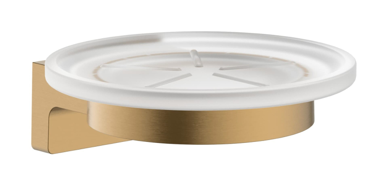 Mýdlenka v barevném provedení kartáčovaný bronz. Šířka tohoto koupelnového doplňku od značky Hansgrohe je 11 cm a je vyroben z materiálu kov, sklo. Montáž vrtáním.