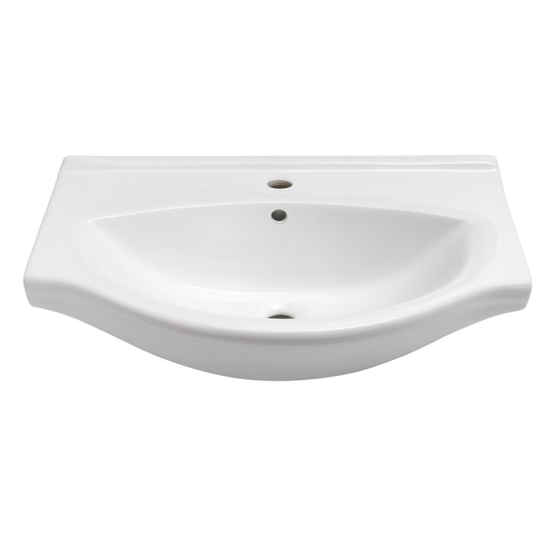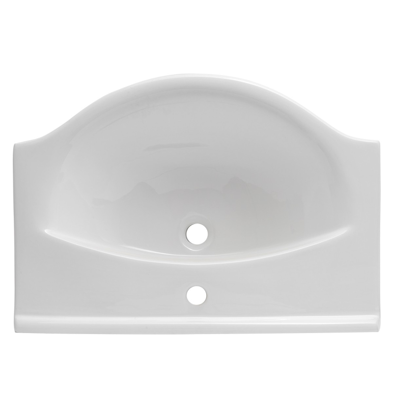 Nábytkové umyvadlo s otvorem pro baterii uprostřed o šířce 70 cm, hloubce 51 cm a výšce 22 cm. Balení bez sifonu a baterie.