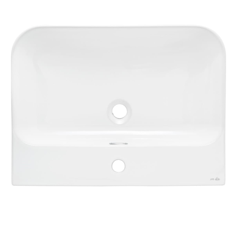 Nábytkové umyvadlo v bílé barvě s otvorem pro baterii uprostřed o šířce 60,5 cm a hloubce 46,3 cm. Balení bez sifonu a baterie.