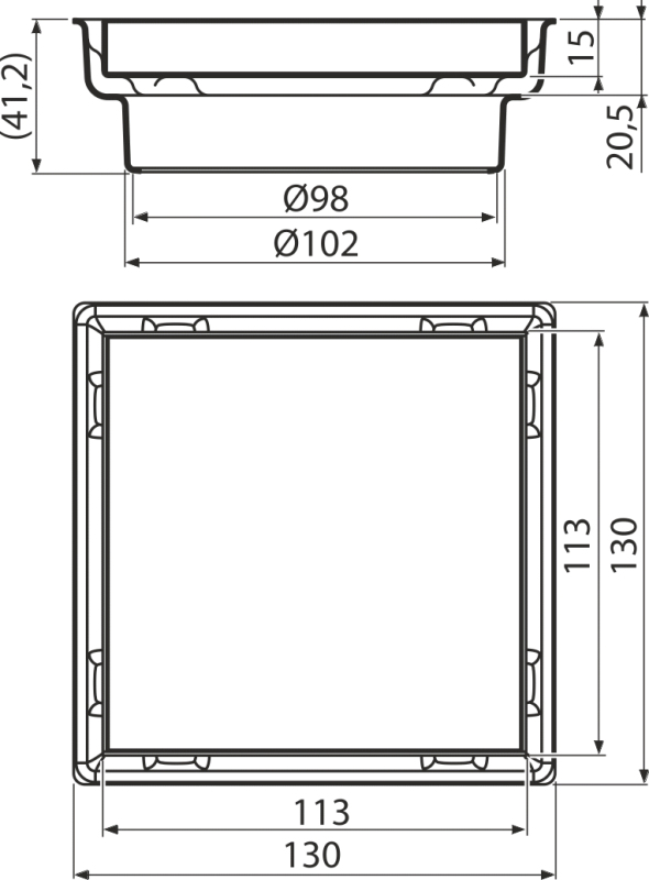 Nástavec hrdla vpusti + Oboustranný rošt 130×130 mm, nerez