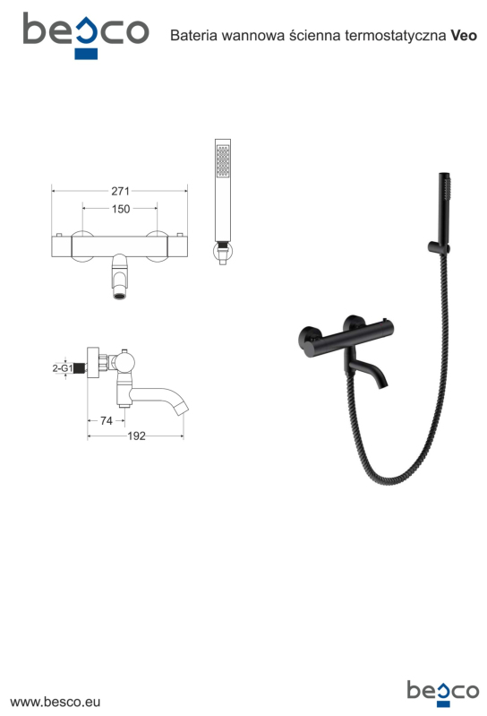 Spojením současného minimalismu s klasickými detaily vznikla série baterií VEO. Nástěnný sprchový/vanový set VEO zlatá barva v moderním oválném tvaru obsahuje termostatickou baterii, vývod ze stěny s držákem, ruční sprchu a hadici.
