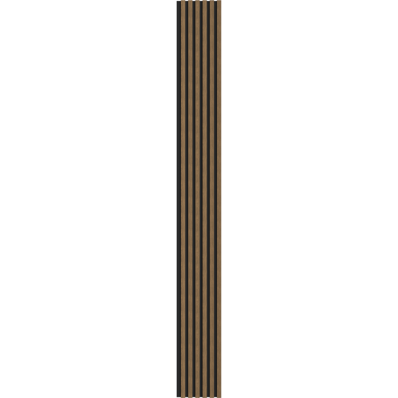 Specifikace produktu: Délka: 275 cm Šířka: 30 cm Tloušťka: 2 cm Tloušťka podstavce: 4 mm Tloušťka jedné lamely: 16 mm Šířka jedné lamely: 30 mm Vzdálenost mezi lamelami: 20 mm Počet lamel: 6 Materiál lamel: MDF páska + technická dýha Materiál podstavce: HDF deska Struktura lamel: Ořech Odstín lamel: Přírodní Barva podstavce: Černá Způsob montáže: Lepením nebo šrouby