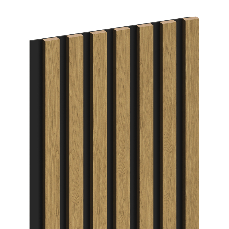 Specifikace produktu: Délka: 275 cm Šířka: 31,5 cm Tloušťka: 1,7 cm Tloušťka podstavce: 4 mm Tloušťka jedné lamely: 13 mm Šířka jedné lamely: 28 mm Rozteč mezi lamelami: 18 mm Počet lamel: 7 Materiál lamel: MDF lamel + melaminová dýha Podkladový materiál: HDF deska Konstrukce lamel: Dub Odstín lamel: Přírodní Barva podkladu: Černá Způsob montáže: Lepením nebo šrouby