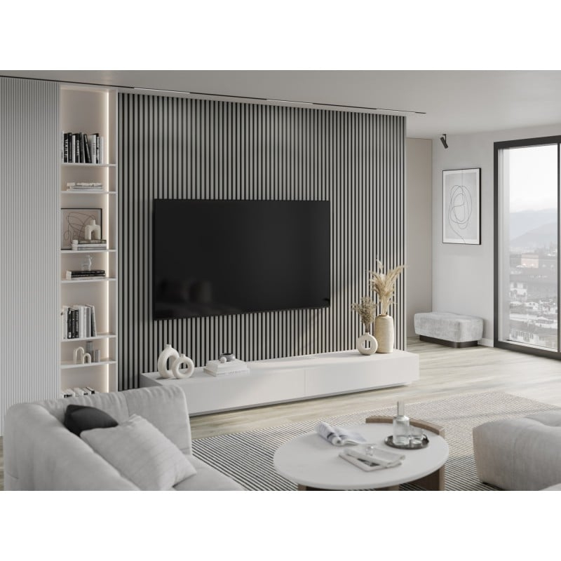 Specifikace produktu: Délka: 275 cm Šířka: 31,5 cm Tloušťka: 1,7 cm Tloušťka podstavce: 4 mm Tloušťka jedné lamely: 13 mm Šířka jedné lamely: 28 mm Rozteč mezi lamelami: 18 mm Počet lamel: 7 Materiál lamel: MDF lišta + melaminová dýha Podkladový materiál: HDF deska Konstrukce lamel: Barva Odstín lamel: Šedá Barva podkladu: Černá Způsob montáže: Lepením nebo šrouby