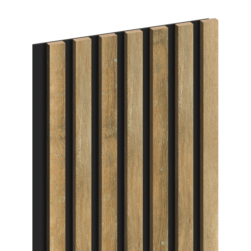 Specifikace produktu: Délka: 275 cm Šířka: 31,5 cm Tloušťka: 1,7 cm Tloušťka podstavce: 4 mm Tloušťka jedné lamely: 13 mm Šířka jedné lamely: 28 mm Rozteč mezi lamelami: 18 mm Počet lamel: 7 Materiál lamel: MDF lamel + melaminová dýha Podkladový materiál: HDF deska Konstrukce lamel: Dub Odstín lamel: Přírodní Barva lamel: Černá Způsob montáže: Lepením nebo šrouby