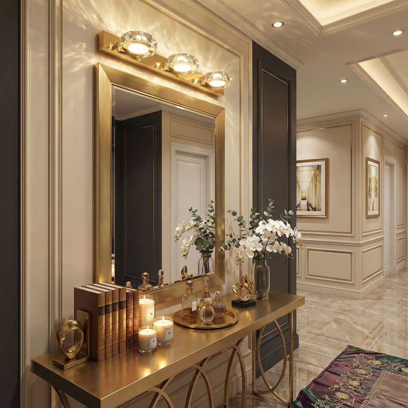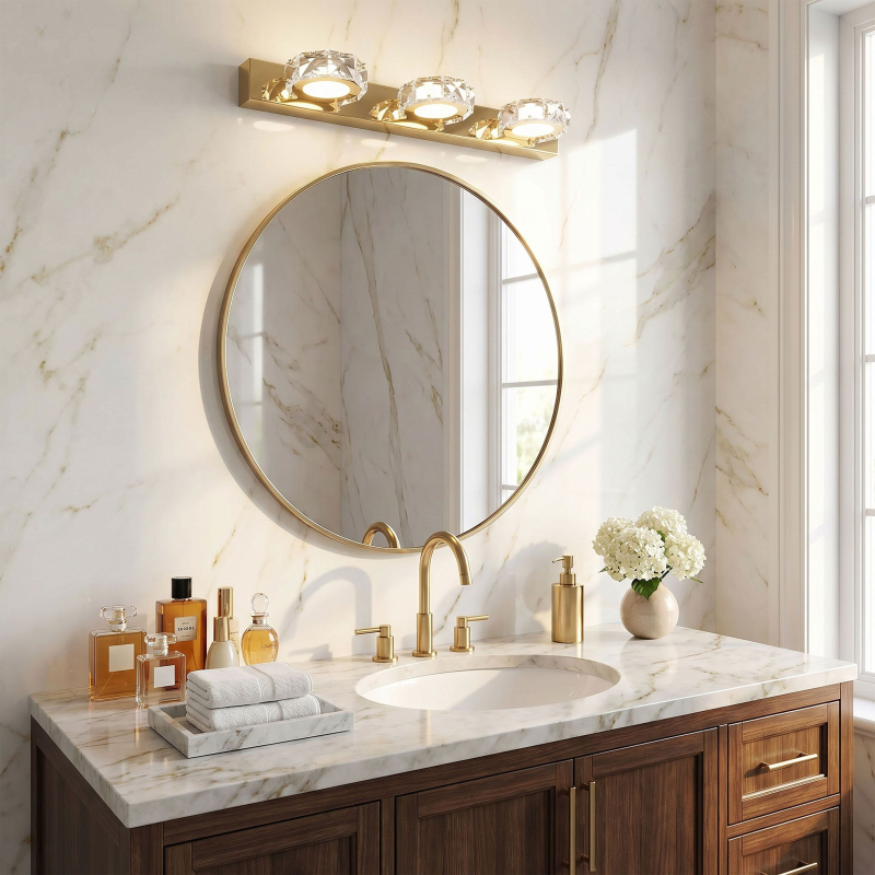 Výjimečné zlaté LED nástěnné svítidlo je ideální volbou pro ty, kteří oceňují luxusní provedení a působivé detaily. Toto stylové svítidlo zaujme elegantní formou a jemným leskem, který dokonale podtrhuje charakter interiéru. Skvěle se hodí jako dekorativní nástěnné osvětlení a dodává prostoru výjimečnou atmosféru i nádech elegance. Nástěnné svítidlo je vybaveno kulatými stínidly vyrobenými z prvků broušených do podoby křišťálu, které krásně rozptylují světlo. Paprsky pronikající skrz ně vytvářejí na stěnách i v okolí působivé světelné odlesky a vnášejí do interiéru příjemnou, náladovou atmosféru plnou lesku. Zlatá elegantní konstrukce se dokonale doplňuje s křišťálovými detaily a vytváří harmonický a luxusní celek. Svítidlo se skvěle hodí do glamour, modern classic i elegantních moderních interiérů, kde slouží nejen jako zdroj světla, ale také jako sofistikovaná dekorace. Je to ideální volba do koupelny, chodby nebo reprezentativních prostor, kde hraje hlavní roli styl, elegance a výjimečný vizuální efekt.