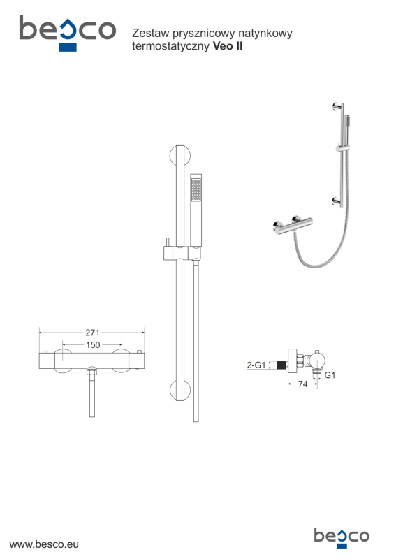 Přednosti termostatického nástěnného sprchového setu VEO zlatá lesklá barva: