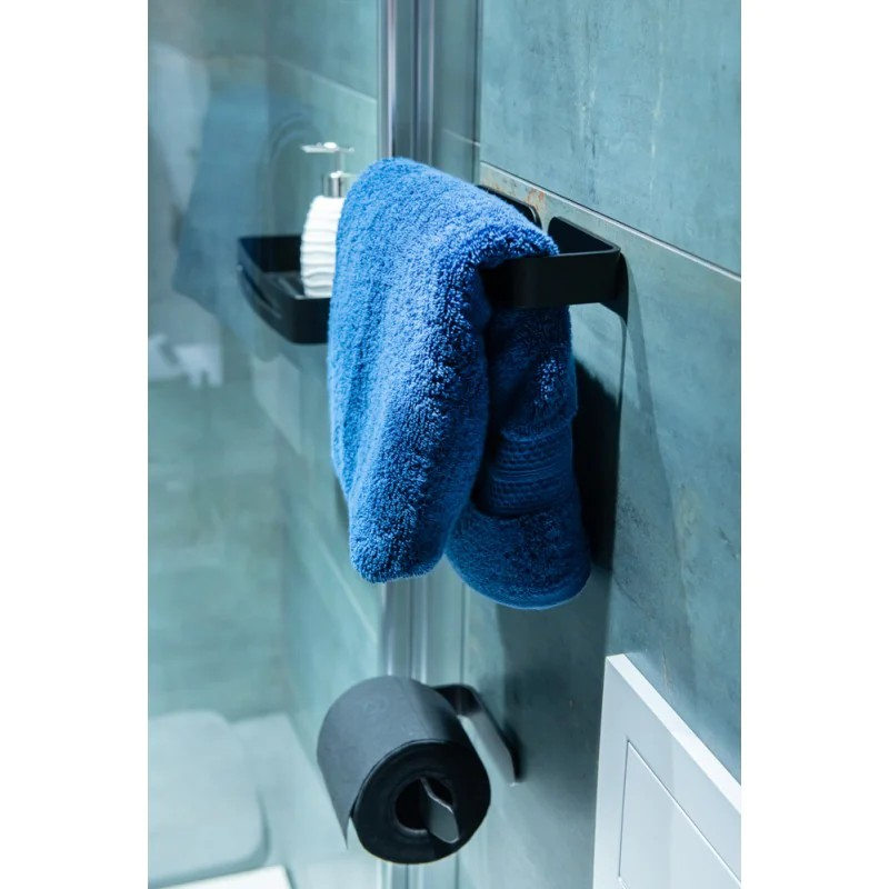 Minimalistický a moderní nástěnný věšák plochého profilutypu. Je vyroben z hliníku lakovaného matnou černou barvou. Instalace se provádí na samolepicí pásku 3M s vysokou lepicí silou. Věšák na ručníky má maximální nosnost 2 kg.