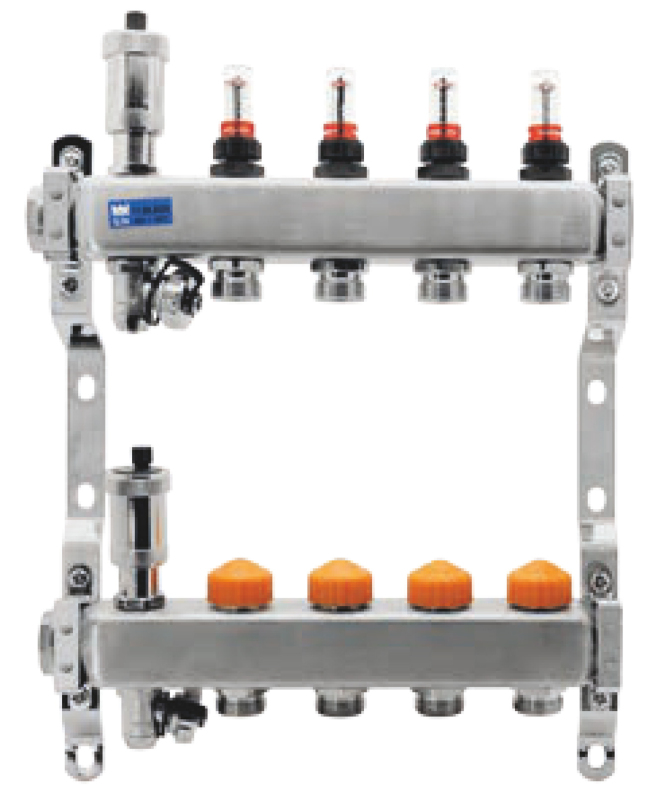 Nerezový rozdělovač F-PRO s automatickou regulací průtoku 4 okruhy