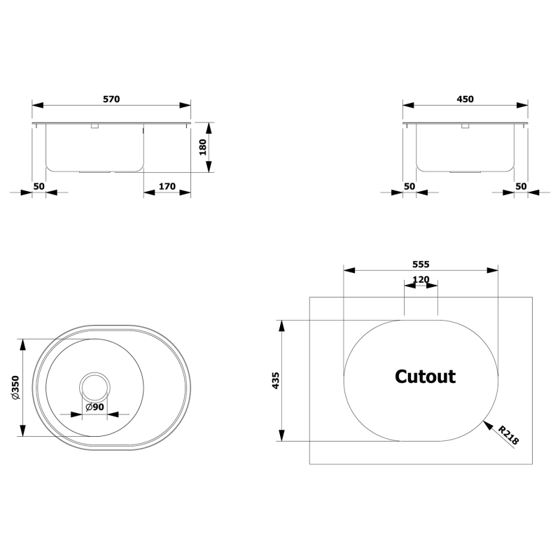 Nerezový vestavný dřez s odkapem, 57x18x45 cm AQ5745B