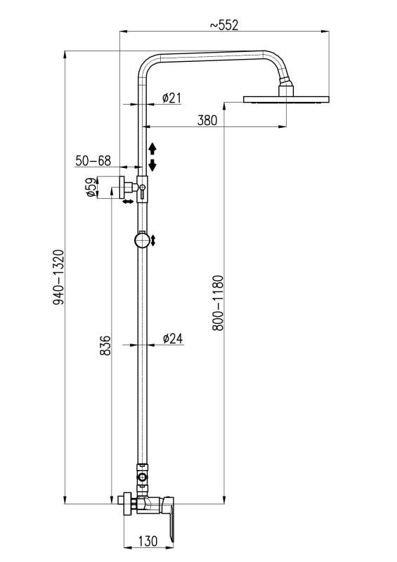 Vodovodní baterie sprchová NIL s hlavovou a ruční sprchou se skládá z: