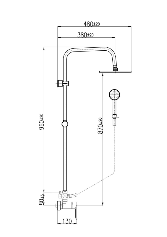 Vodovodní baterie sprchová NIL s hlavovou a ruční sprchou se skládá z: