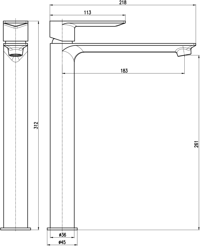 Vodovodní baterie umyvadlová stojánková bez otvírání odpadu, vysoká.