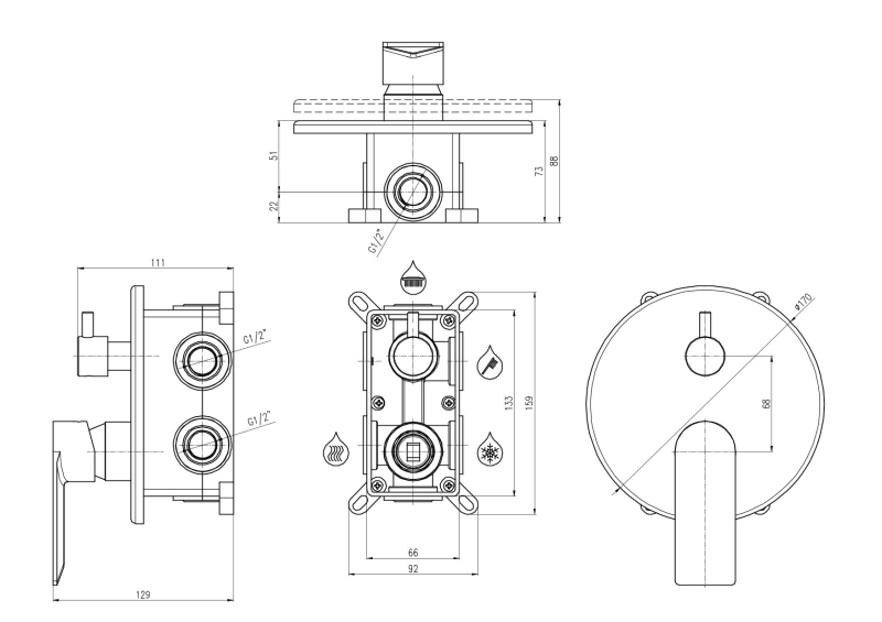 Tuto baterii můžete použít buď do sprchového koutu jako kombinaci hlavové a ruční sprchy a nebo k vaně jako kombinaci např. napouštění přepadem a ruční sprcha nebo výtokové ramínko a ruční sprcha.