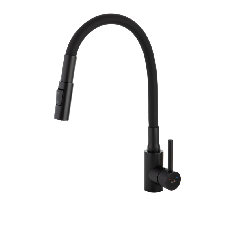 Nila - Upright sink mixer with elastic 2-function spout, black