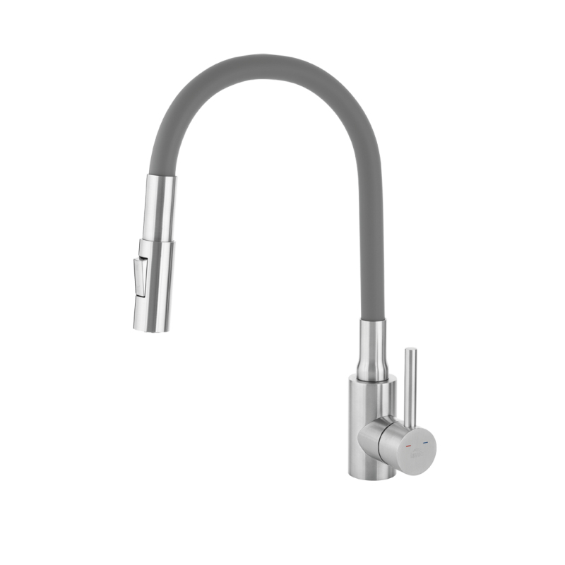 Nila - Upright sink mixer with elastic 2-function spout, brushed steel/grey
