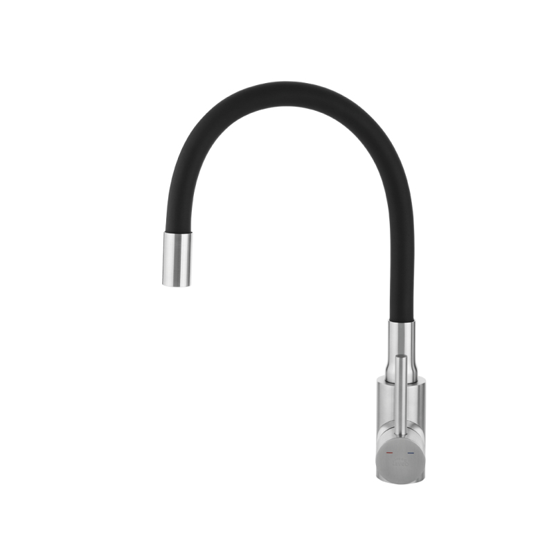 Nila - Upright sink mixer with elastic spout, brushed steel/black