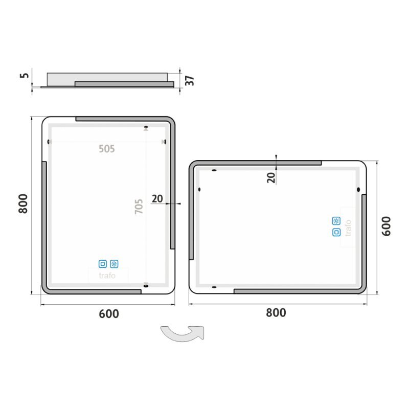 Nimco ZP 15002VX LED zrcadlo 600x800 se dvěma dotykovými senzory