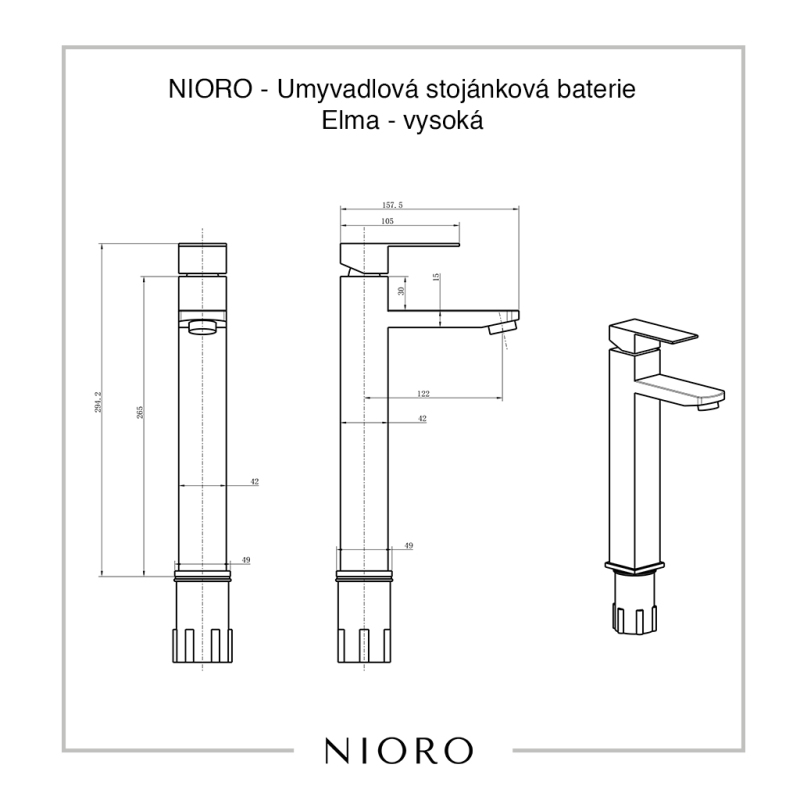 NIORO - Umyvadlová stojánková baterie Elma - vysoká - chrom TU-481711