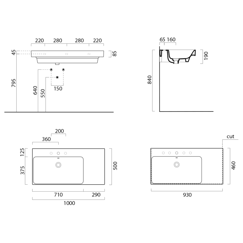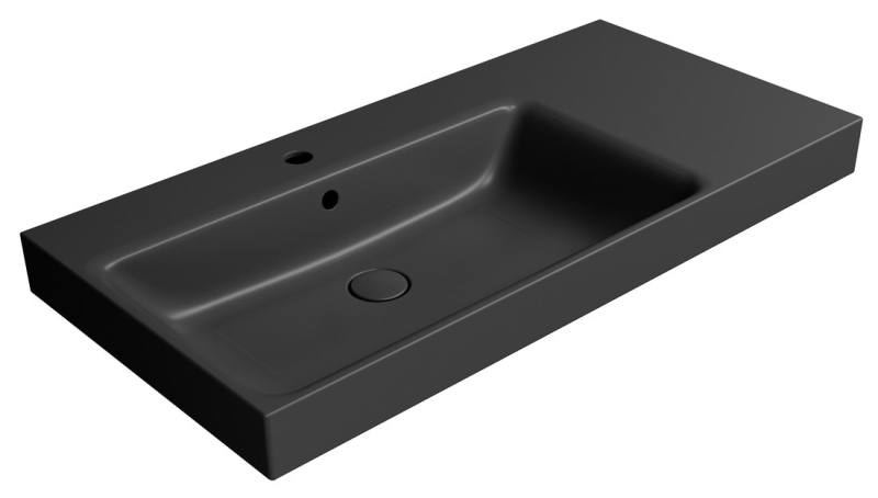 NUBES keramické umyvadlo 100x50cm, s odkládací plochou vpravo, černá mat