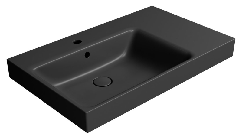 NUBES keramické umyvadlo 80x50cm, s odkládací plochou vpravo, černá mat