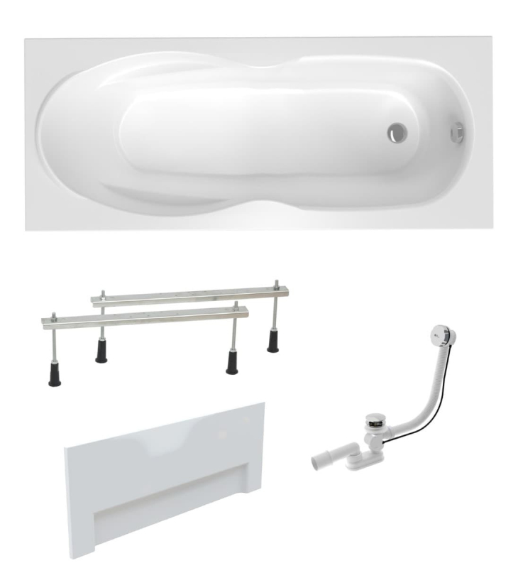 Obdélníková vana vyrobená z akrylátu, tloušťka materiálu je 3,2 mm. Určení vany - levá i pravá orientace. Objem vany je 170 litrů. Včetně sifonu, nožiček a čelního panelu.