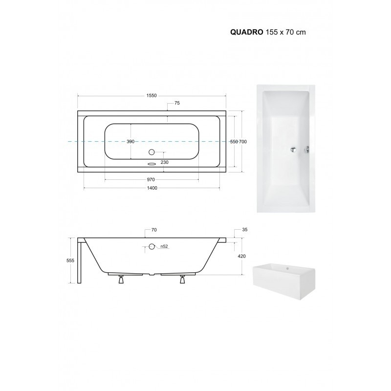 Obdélníková vana QUADRO vyniká vysoce kvalitním zpracováním a spolehlivou funkčností všech součástí a materiálů.