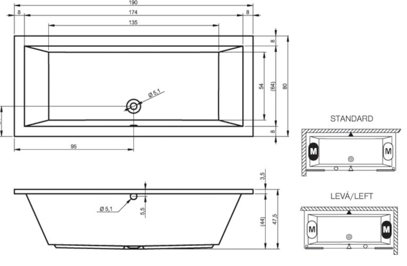 Obdélníková vana z akrylátu. Levá i pravá orientace. Objem vany je 315 litrů. Balení bez panelu, nožiček a sifonu.