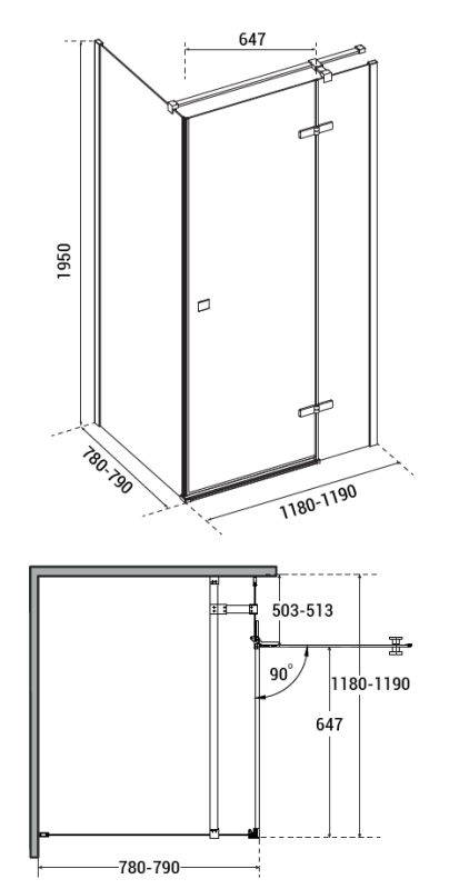 - 120 × 90 × 195 cm (montážní rozměr 118 - 120 × 88 - 90 cm)