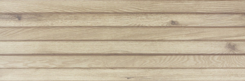 Rektifikované. Obklad ve světle béžové barvě o rozměru 29,8x89,8 cm a tloušťce 8 mm s reliéfnám povrchem. Vhodné pouze do interiéru. S velkými a nahodilými odchylkami v odstínu barev, struktury povrchu a kresby.