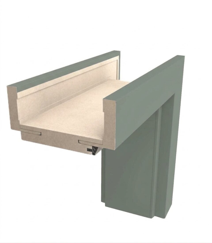 Pravá obložková zárubeň v barevném provedení šalvěj matná pro dveře o šířce 80 cm pro tloušťku stěny 12-14 cm.