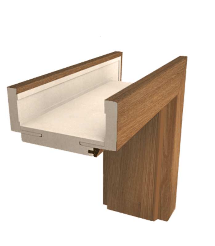 Pravá obložková zárubeň v barvě ořech karamel pro dveře o šířce 90 cm pro tloušťku stěny 20-22 cm.